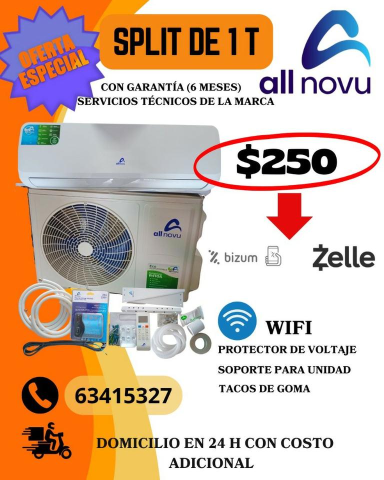 SPLIT DE 1 TONELADA CON ACCESORIOS Y WIFI - $250