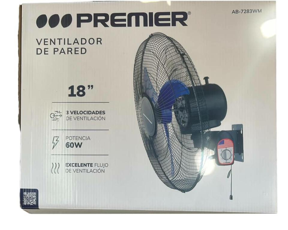 Ventilador de pared 18" marca premier, nuevo en caja con garantía.