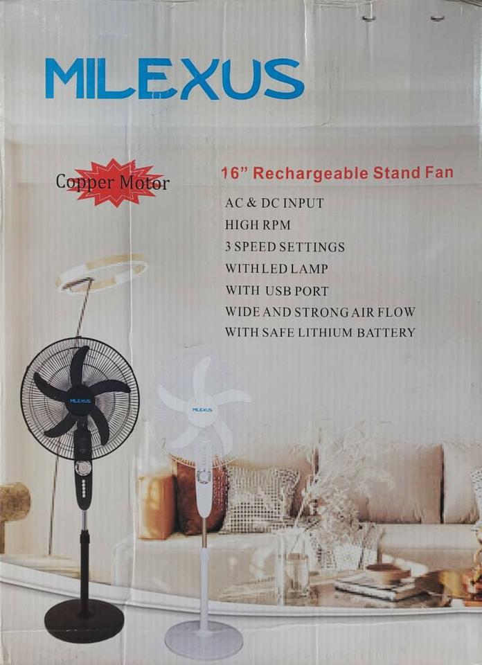Ventilador Recargable Negro de Pedestal Milexus Batería Litihum duración 8 horas en 90 USD Transporte incluido