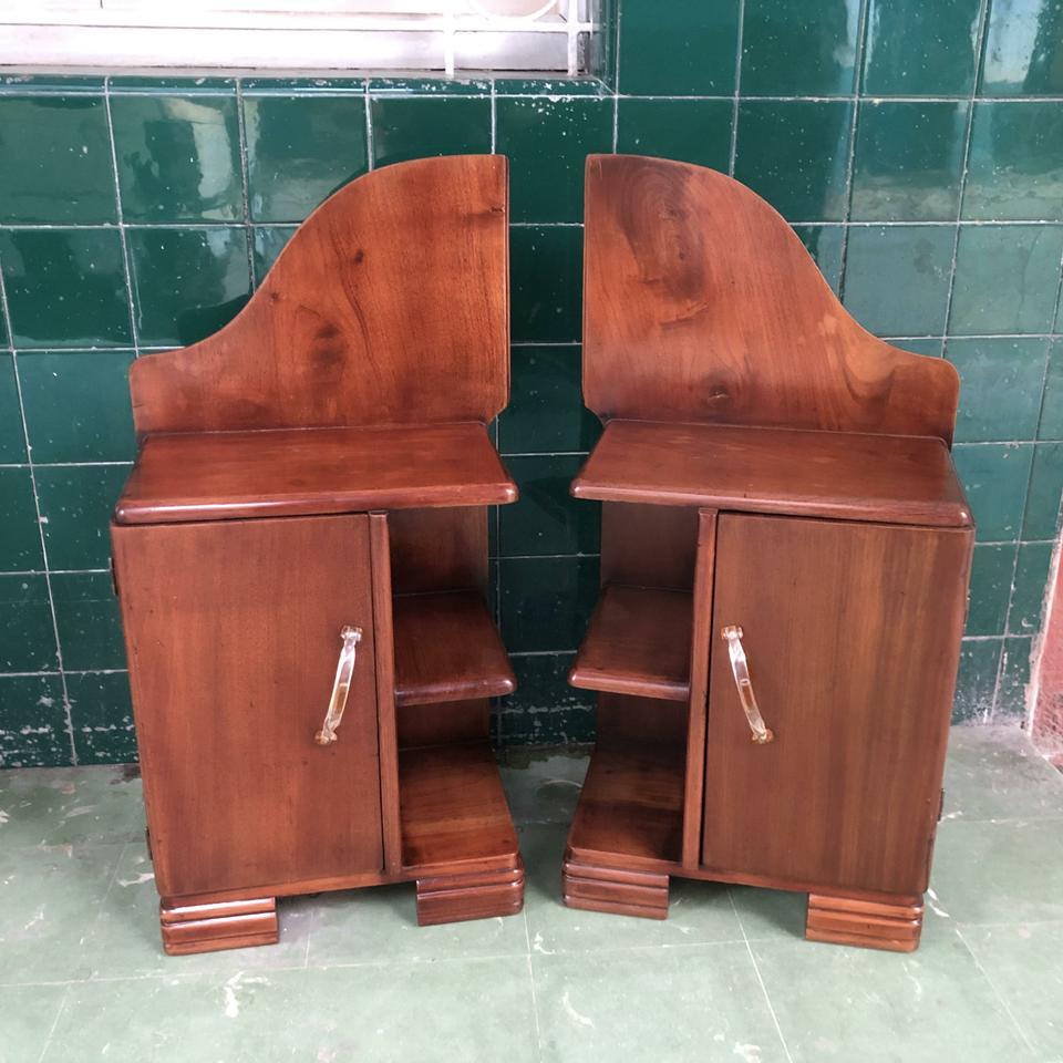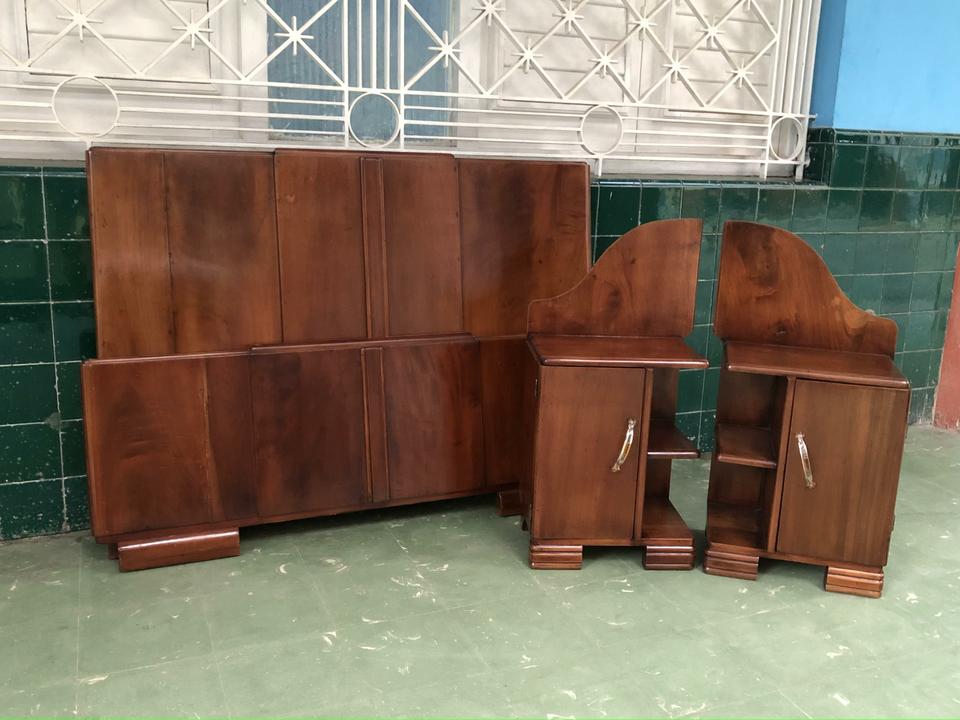 Cama Camera de los Años 50 con sus dos mesitas de noche, recién restaurada. Cuenta con su bastidor de madera.