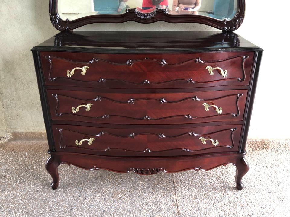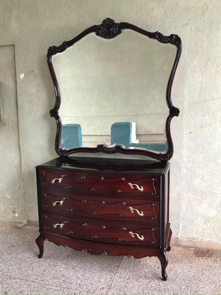 Cómoda Luis XV recién restaurada. Con su espejo original biselado muy bien conservado.