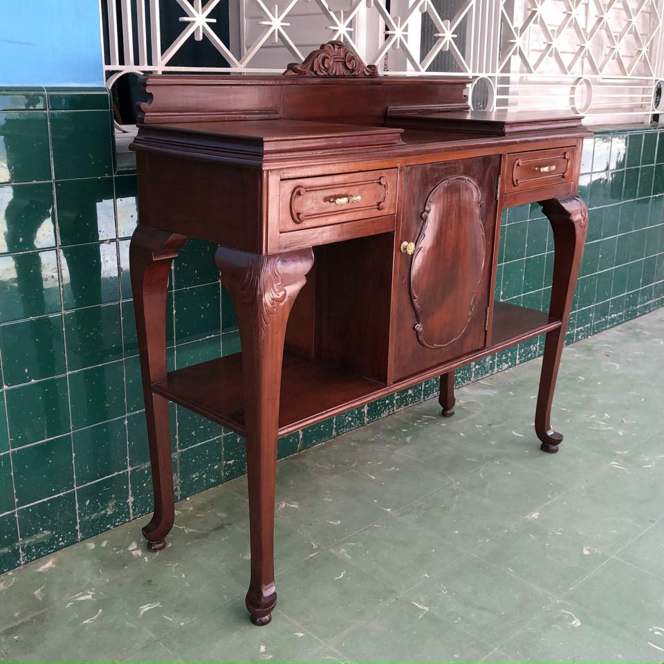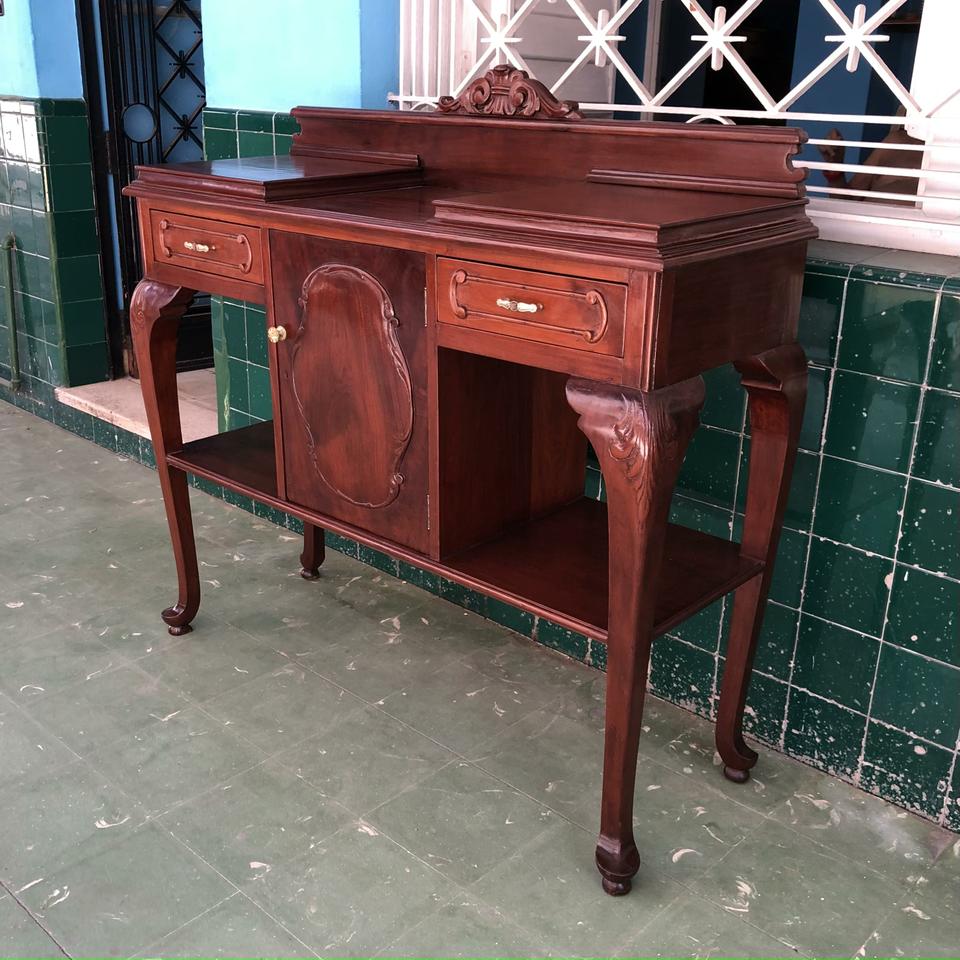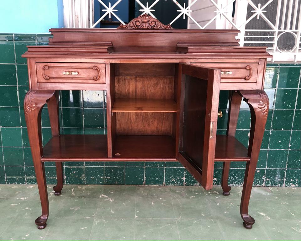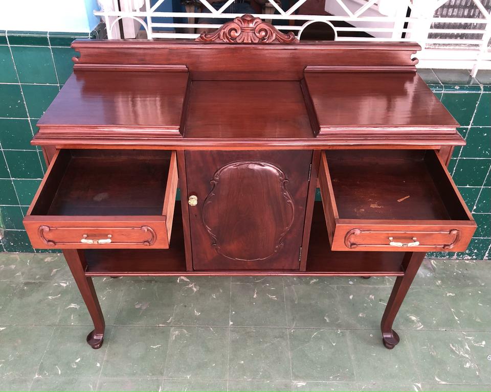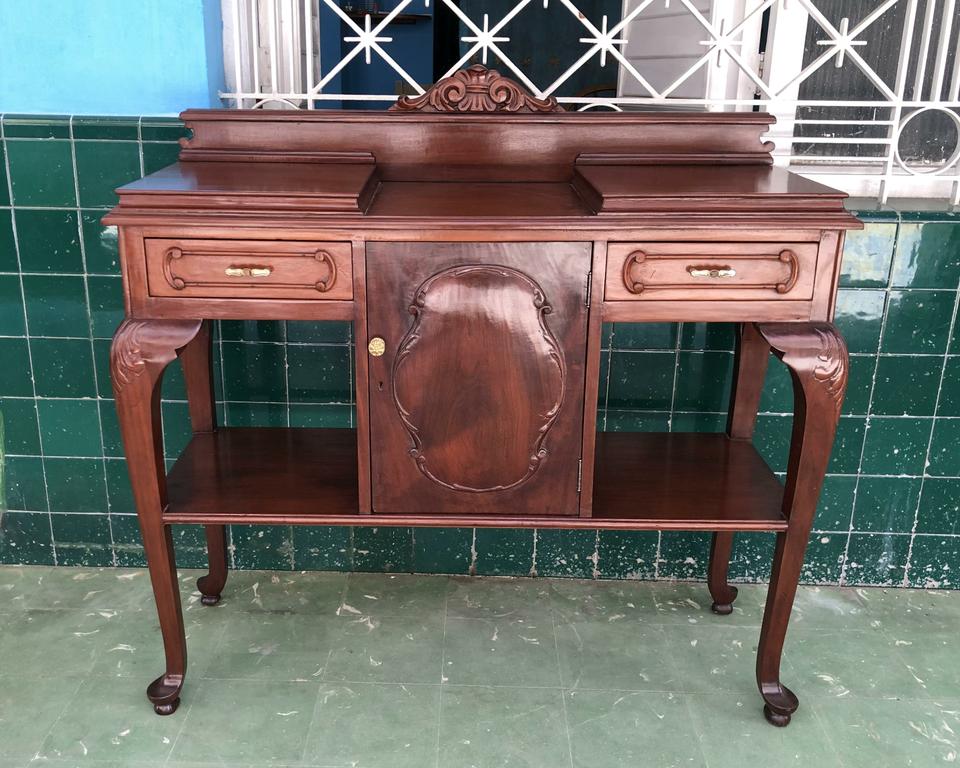 Trinchante estilo Inglés acabado de restaurar. Tiene un entrepaño en el interior de la puerta.