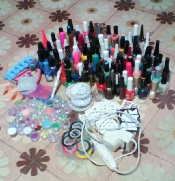 Se vende, máquina de uñas acrílicas con las fresitas, 98 pomos de pintura entre nuevos y de uso, 1 guillotina, deditos de prueba, pinza para coger las piedras, carruseles, adornos para encapsulado, calcomanías, pincel kolinsky, vasito para el líquido, plaquitas para cuñitos, guías para el filo.