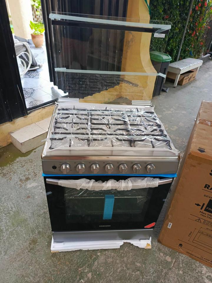 Cocina 6 hornillas gas con horno, marca SAMSUNG Magneto, Tapa de cristal, Luz en el horno $650 USD Mensajería Incluida