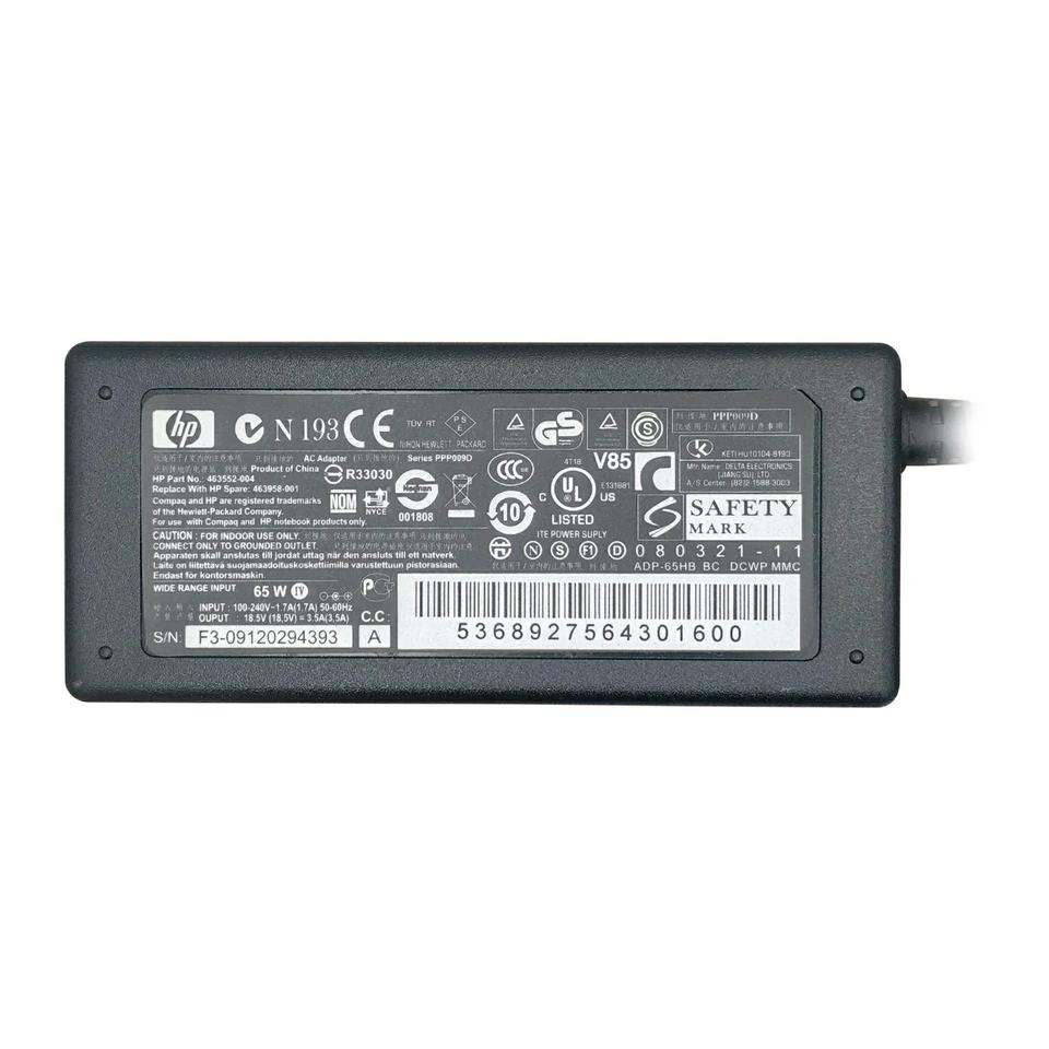 Hewlett-Packard (HP) PPP009L - Cargador Adaptador De CA Con Punta De 65 W, 18,5 V, 3,5 A, 1,7 Mm
