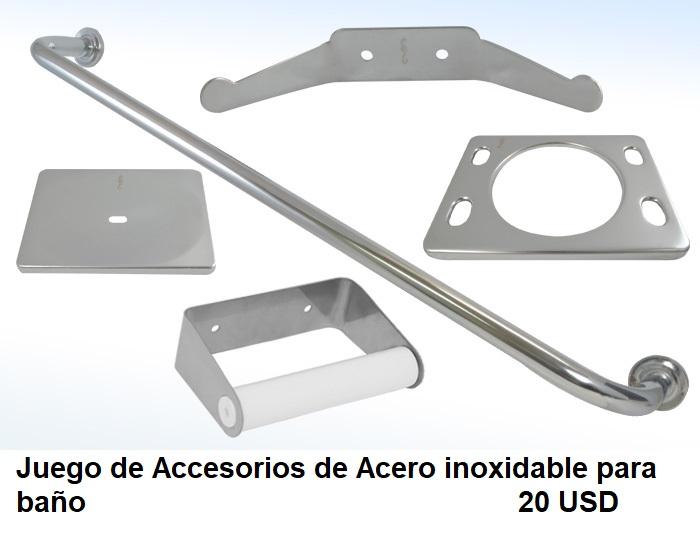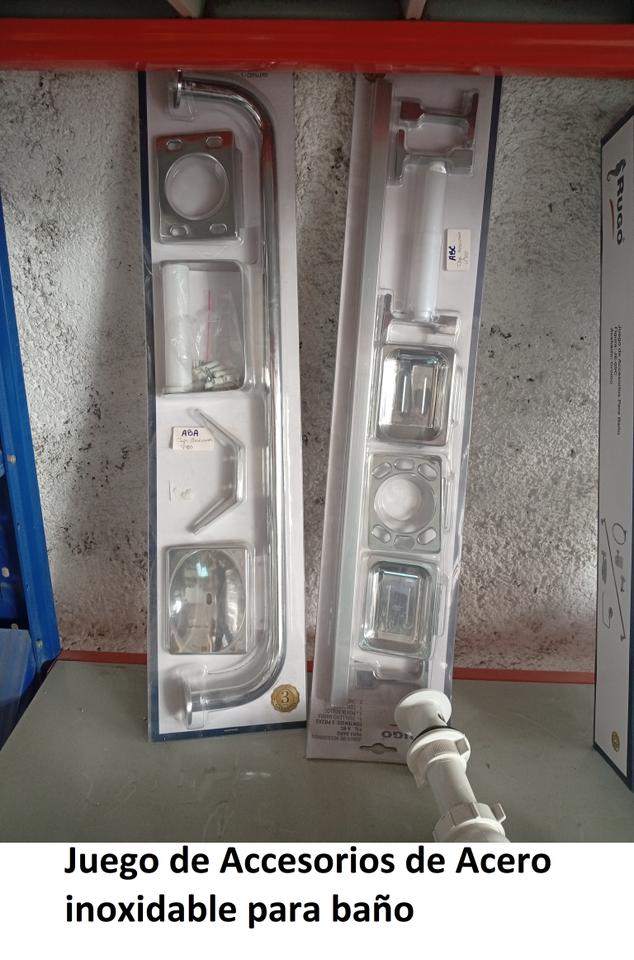 Juego de Accesorios de Acero Inoxidable para baño, acabado Cromo y Marca Rugo trae: Accesorios para baño, dos porta jabones, Porta cepillos, toallero Y porta papeles