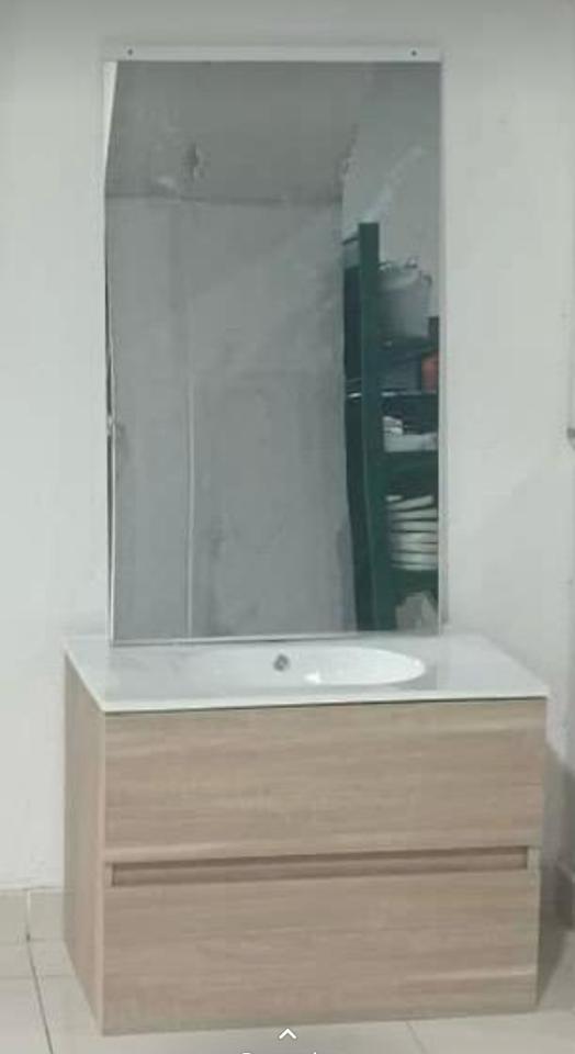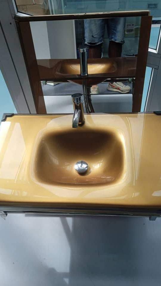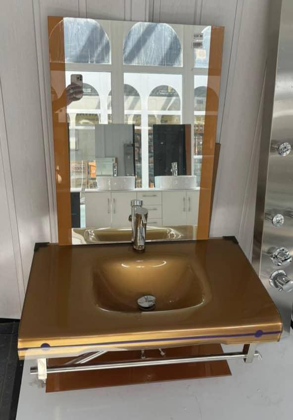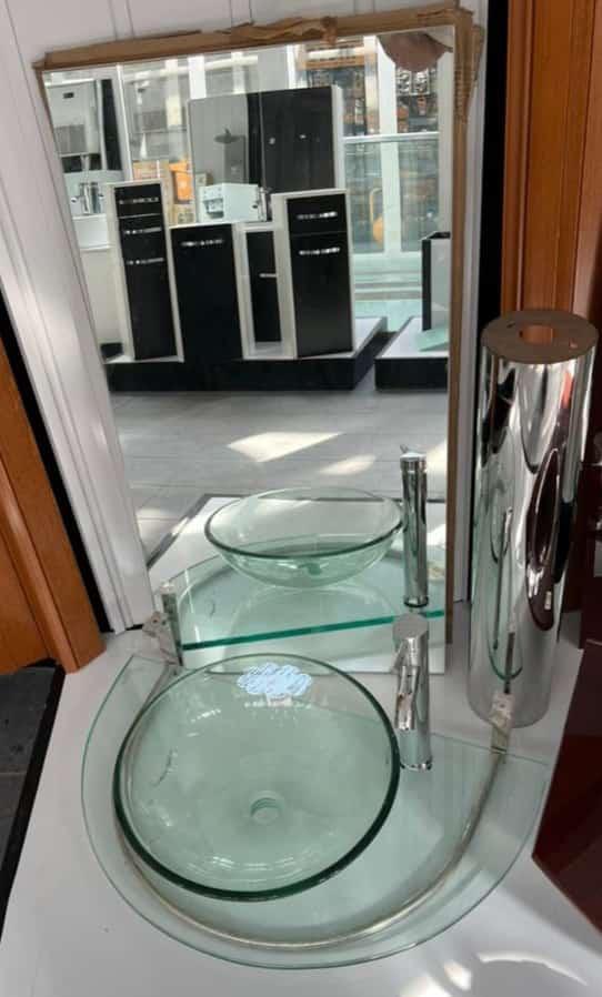 Lavamanos de cristal con todos sus aditamentos y espejo. -