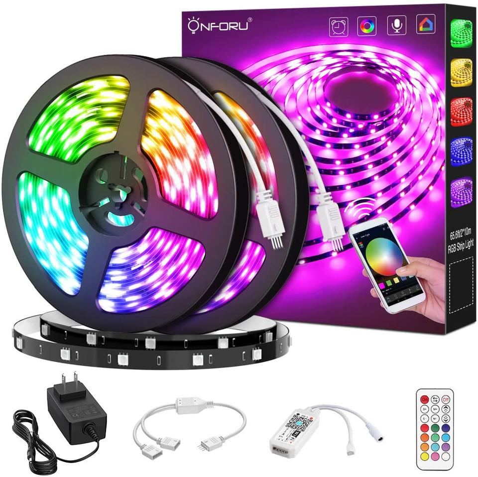 Tiras Led, luz RGB (se configura el color), atenuables, 5mts