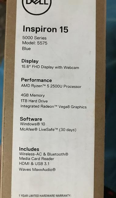 LAPTOP DELL EN CAJA NEW/Ryzen 5/Vega 8/1000GB/4GB/15,6 FHD - $400