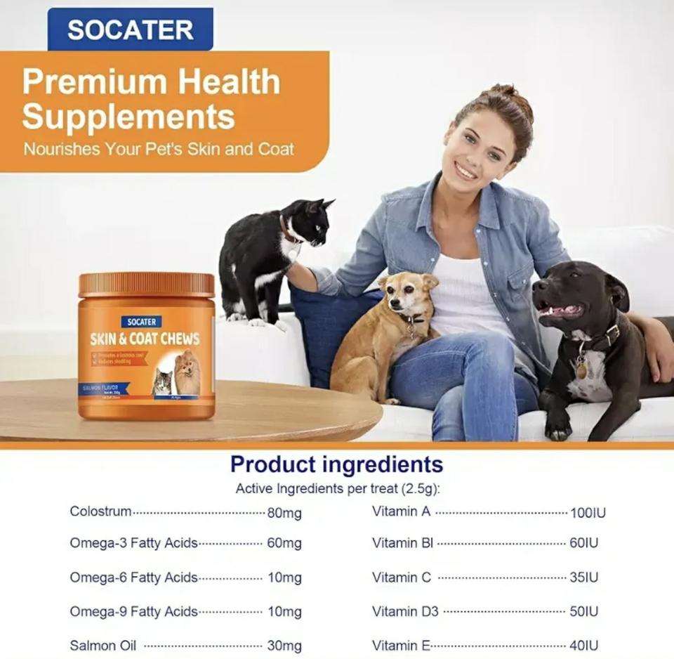 3, -6 y -9 y aceite de salmón, estas golosinas garantizan un pelaje brillante y alivian la piel sensible.