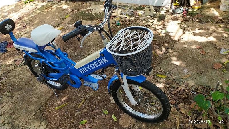 Se vende una bicicleta eléctrica marca BUCATTI – DRYDERK, color azul y blanca. La bicicleta es de uso, pero está bien cuidada, tiene batería de litium de 36v 18Ah y su cargador, con una autonomía de 30 km, tiene gomas gordas y nuevas, freno de pastillas delante y freno de banda detrás, pedales, luces delantera y trasera, tiene los papeles originales de compra, y todo funciona bien. La bici moto no es nueva ya tiene un tiempo de uso, tiene detalles pequeñitos que se pueden mejorar, por eso es el increíble precio de 400 usd. Estas bicicletas son muy buenas y de excelente calidad y durabilidad. Son los tanques de guerra de las calles. Son las más usadas por las personas por su calidad precio, una nueva de estas sobrepasa los 1200 usd. Este modelo de batería que tiene la bicicleta son las más seguras y nunca a existido un incidente con este modelo. Los detalles son: la pantalla de indicación de la velocidad no se ve bien, los números define bien, pero enciende perfecto, quizás se pueda revisar por un técnico. si necesitas una bicicleta eléctrica para ir a la escuela, para hacer viajes cortos,puede que esta sea tu mejor opción.