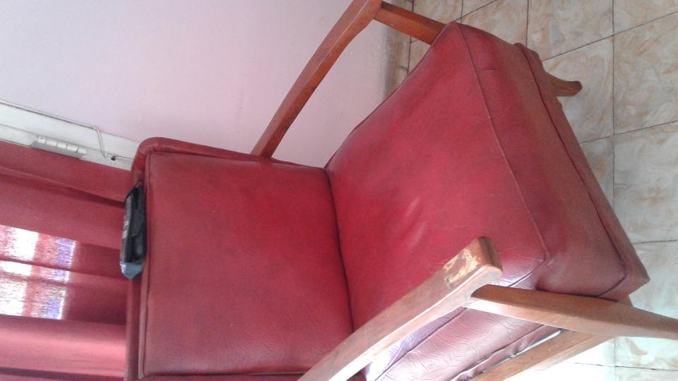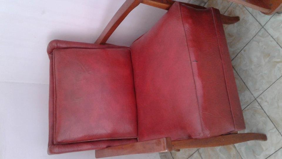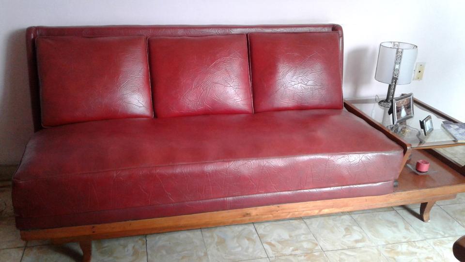 Juego de sala de caoba y vinil rojo de 2 butacas y sofa de 3 plazas conservado me ajusto