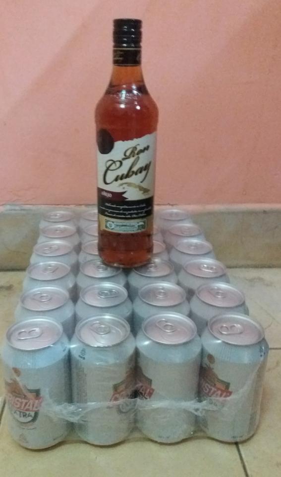 combo caja de cerveza cristal extra y botella de Cubay añejo a 2300