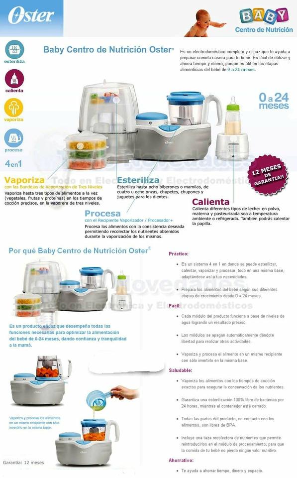 Con este CENTRO DE NUTRICIÓN PARA BEBE, usted podrá PROCESAR, VAPORIZAR, CALENTAR Y ESTERILIZAR todo lo que tenga relación con la alimentación de su Bebe esta en este aparato.
