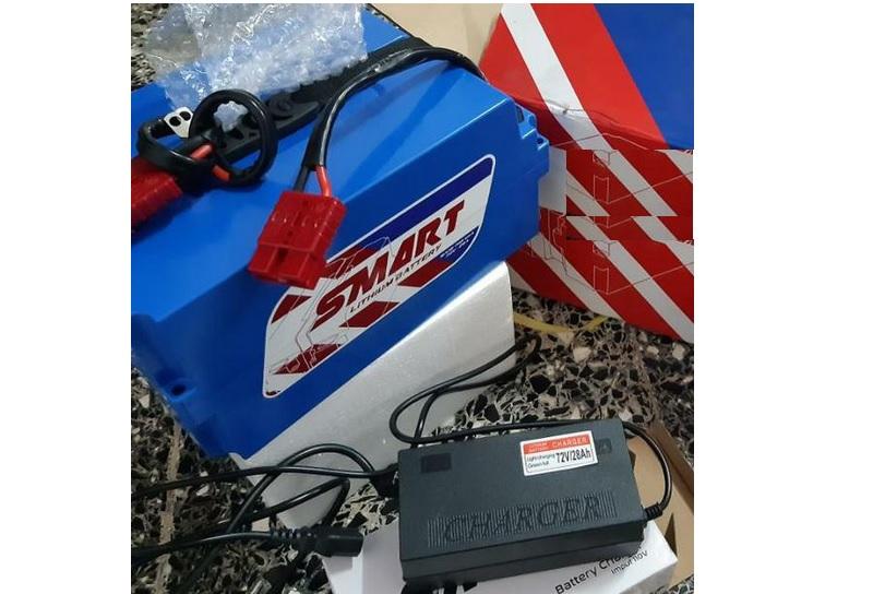 Las baterías son de uso, pero funcionan bien, una batería es marca SMART de 72v x 28 amperes, La segunda es marca PICC de 72v x 30 amperes. Las dos se cargan excelentemente bien con el cargador de 72 x 28AH. La batería (SMART) tiene una reparación y está haciendo actualmente entre 40 o 50 km. La batería (PICC) nunca se ha abierto, ni reparado, está haciendo 20 km, quizás un poco más, tiene las siguientes Dimensiones: Ancho: 24cm X 20cm, Alto: 22cm. Si usted necesita una batería a buen precio, quizás estas dos sean la mejor opción. Cargador más dos baterías 300 USD.