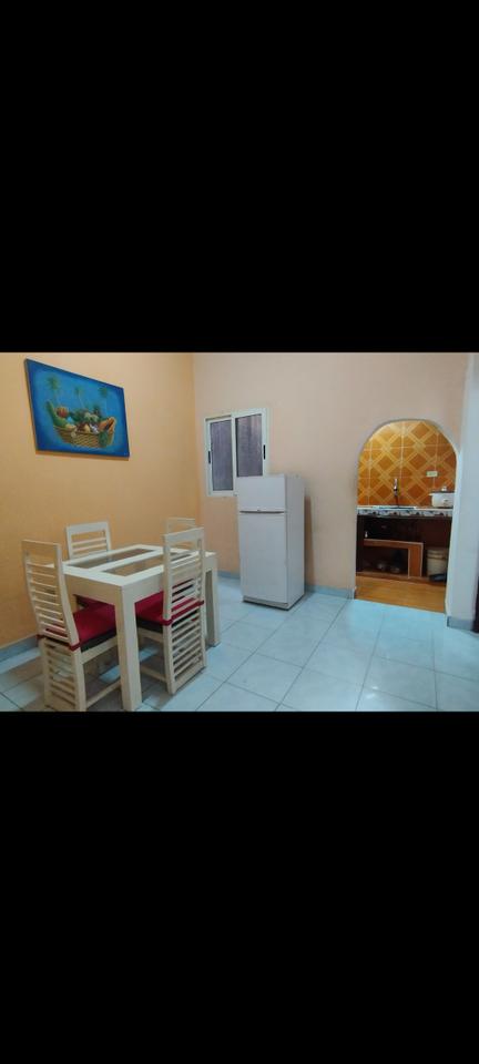 La habitación está climatizada(Split), TV, lavadora automática, cocina equipada.