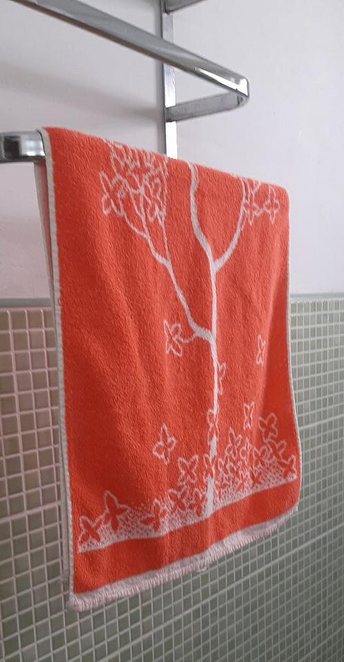 Toalla blanca y naranja claro 140 x 67 cm precio 1000 pesos