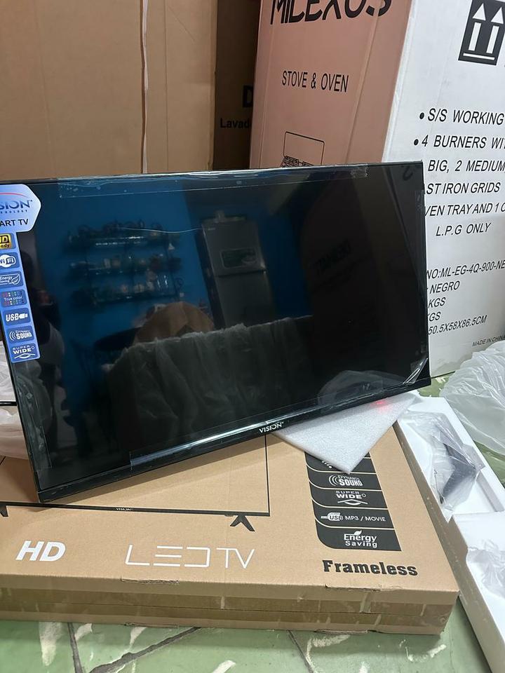 Smart-TV 32 Pulgadas marca Visión (Híbrido) con cajita HD interna, soporte para la pared $245 USD