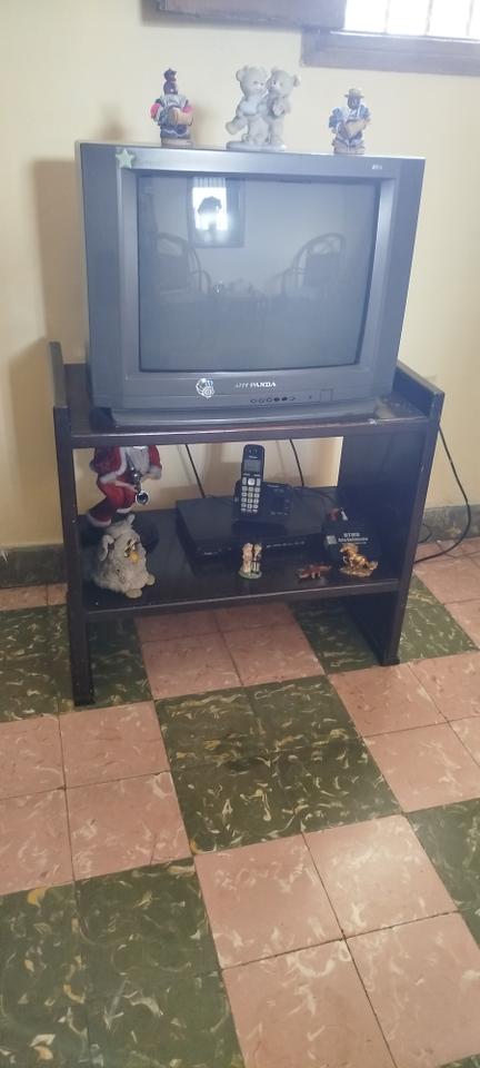 Vendo (todo funciona) TV marca ATEC-Panda, cajita codificadora marca Soyea, DVD marca PARKER (sin control remoto y tiene para USB) y el mueble que se ve, no tengo transportación y vivo en Playa.